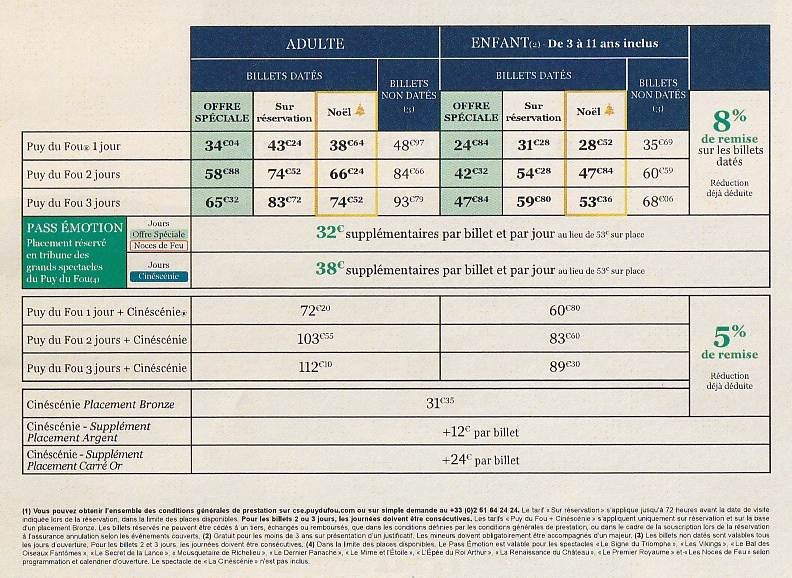 Lors de votre réservation “billet d’entrée”,  vous pouvez réserver auprès des collaboratrices du COSC, les Hôtels ainsi que les restaurants, fast-foods… du Puy du fou, n’hésitez pas car vous avez des réductions lors de votre réservation.